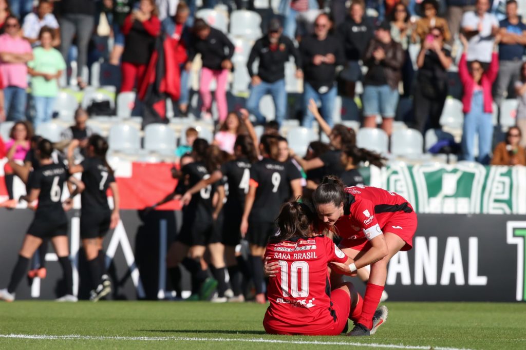 Maria Baleia conforta Sara Brasil, perante a festa do Futebol Benfica… que não terá grande razão de o ser | 📸 Nuno Abreu