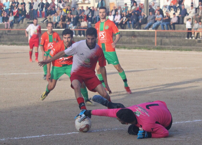 De parada e resposta, este Derby de Ourém foi ganhando eletricidade à medida que o sol se punha. Aos 31 minutos, nova oportunidade: Luís Lopes voltou a ficar na cara de Russo e o guarda tornou a levar a melhor, defendendo um remate que deveria ter selo de golo… mas não teve.