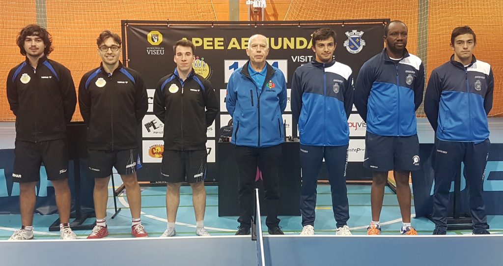 O trio de mesatenistas superiorizou-se aos adversários que formaram equipa em representação da Associação de Pais de Mundão.
