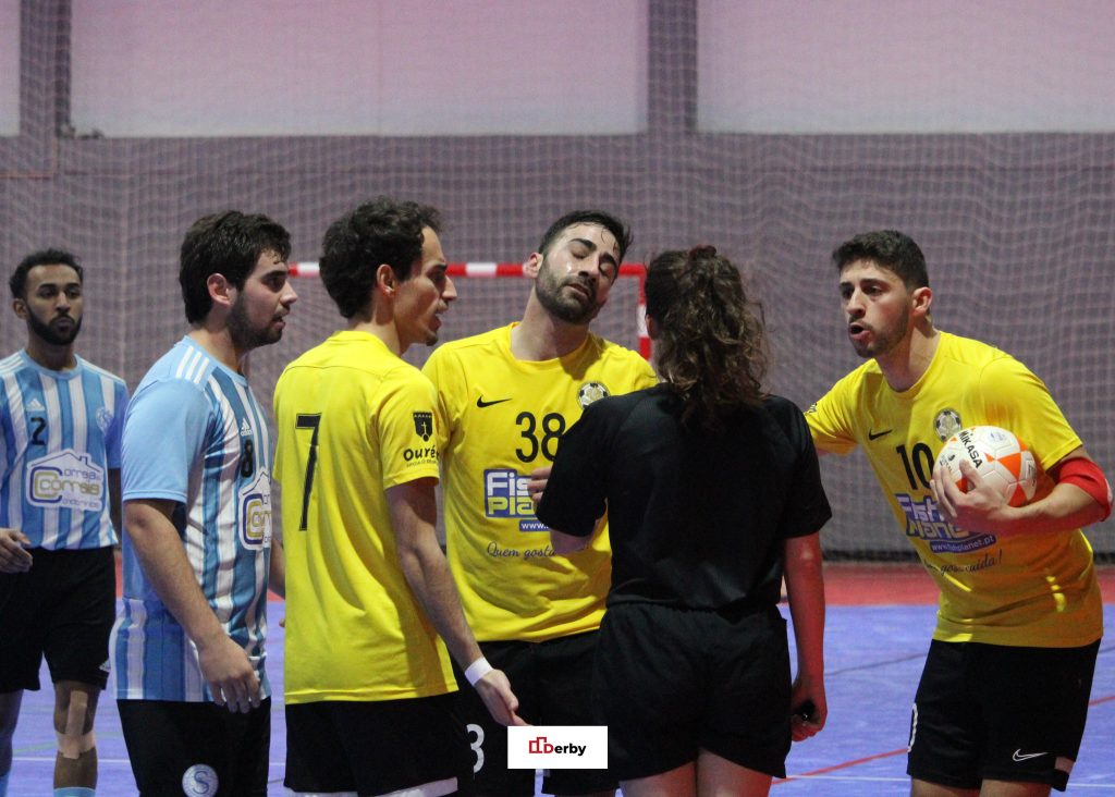 O Derby arriscaria escrever que a falta seria ao contrário, mas reconhece que a juíza Leonor Carvalho estava melhor colocada para perceber quem cometeu a infração. Os oureenses bem protestaram, mas o livre direto caiu mesmo para o lado do Vitória.